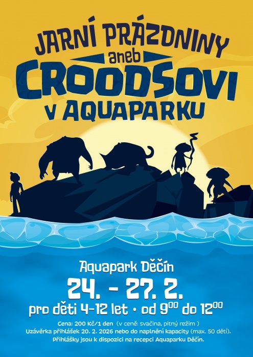 Nevíte co o jarních prázdninách? Zkuste přihlásit své děti na zábavnou akci Croodsovi v Aquaparku Děčín!