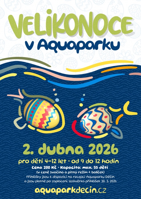 Na velikonoční prázdniny, tj. ve čtvrtek 2. dubna, bude v našem areálu probíhat tradiční akce pro děti, a to Velikonoce v Aquaparku Děčín.